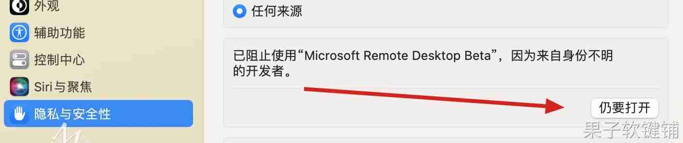 4. 打开安装的软件,如仍报错,打开【系统设置】–【隐私与安全性】- 下滑【安全性】板块下 …不明身份的开发者 点下方的【仍要打开】,输入开机密码 即可打开!